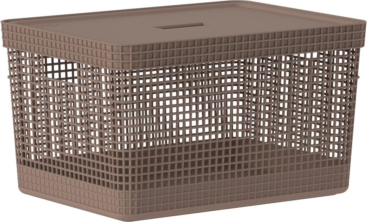 Cesto Organizador Grid c/Tampa 20L Marrom Amêndoa (ref.CG350MRAF)