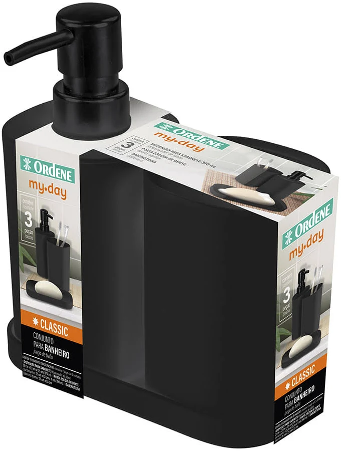 Conjunto Banheiro 3 Peças Plástico Preto (ref.OR94040)